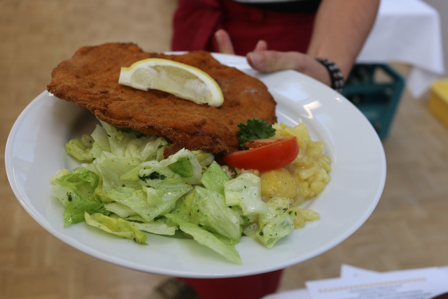 Wir laden zum traditionellen Schnitzelessen am 1. Adventsonntag, dem 3. Dezember von 10 - 14.30 Uhr. Der Erlös kommt regionalen sozialen Projekten zugute.