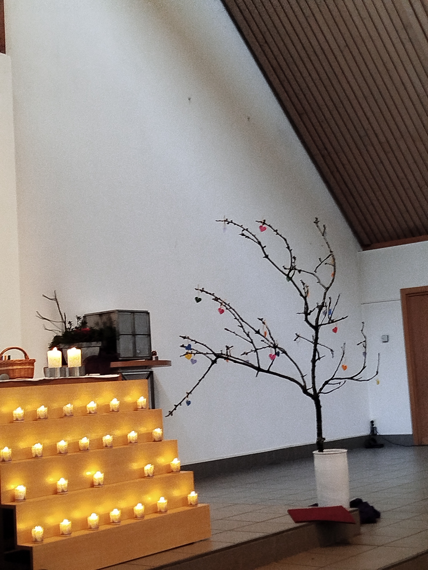 In unserer Feier stand der „Baum der Erinnerung“ im Zentrum. Nachdem wir die Geschichte des gleichnamigen Buches dazu gehört und gesehen hatten, gestalteten wir gemeinsam unseren Baum der Erinnerung. So wie die Tiere sich gerne an den Fuchs zurückerinnert haben, gibt es auch in unseren Herzen verstorbene Menschen, die wir sehr gerne hatten und die wir vermissen. An sie dachten wir in der Feier ganz besonders und schmückten unseren eigenen Baum mit Herzen unserer Erinnerungen.