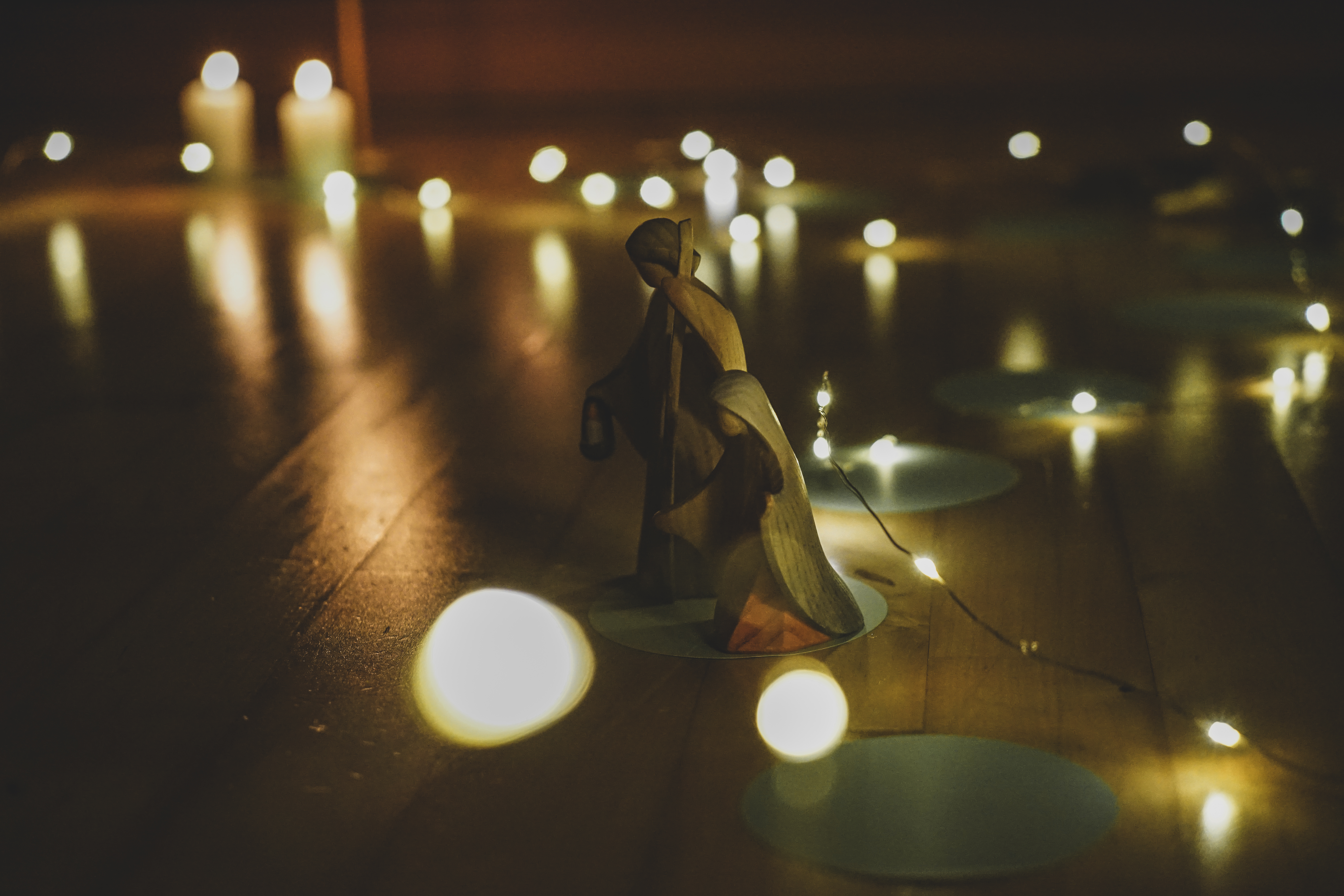 Wir legen kleine Papierkreise als geschwungenen Weg zur Krippe (oder dorthin, wo an Heilig Abend die Krippe aufgestellt wird) und stellen Maria und Josef auf den ersten Kreis. Jeden Tag dürfen die Kinder die beiden Figuren ein Stückchen näher zur Krippe rücken. Auch die Hirten und ihre Tiere nähern sich langsam aus verschiedenen Richtungen. So wächst unsere Vorfreude jeden Tag ein bisschen – bis am Heiligen Abend alle zusammen sind und das Jesuskind endlich in der Krippe liegt.
