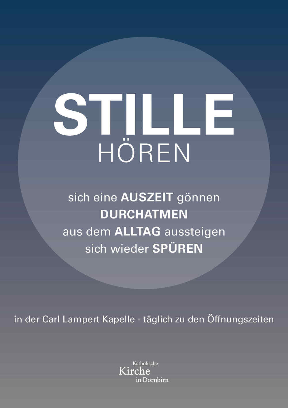Sie sind herzlich eingeladen, sich selber in der Carl Lampert Kapelle eine stille Zeit zu schenken. Jeden Tag im Advent zu den Öffnungszeiten der Carl Lampert Kapelle.